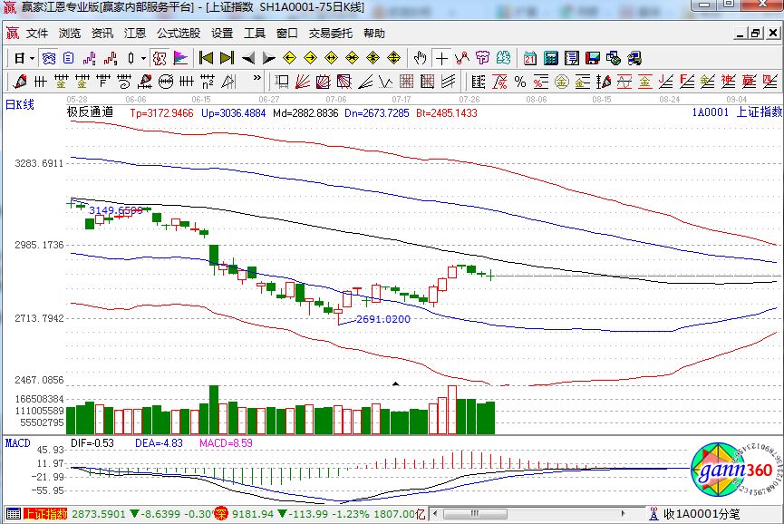【贏家學院點評:極反通道工具可幫助用戶解決大盤或個股趨勢判斷、價格買賣點,在日內差價高拋低吸方面更能提示其優勢。】
