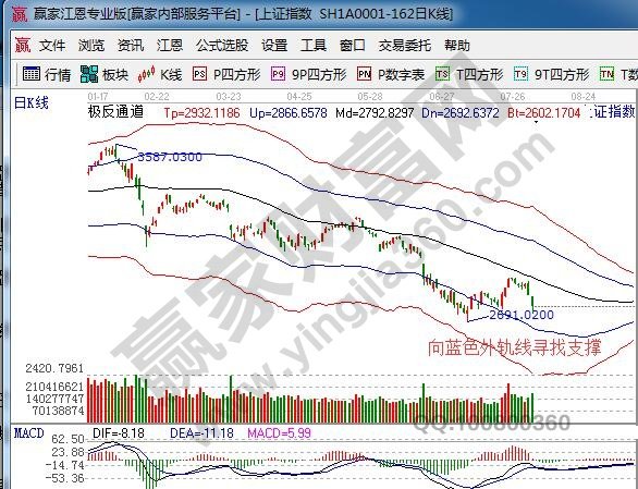 ☆依據贏家江恩理論系統極反通道提示:滬指暴跌中短周期15、30、60分鐘極反通道于午盤出現時價共振,跌幅收窄,短期反攻看5分鐘生命線2772及外軌線2790附近,日線按規則向藍色下軌線尋找支撐。