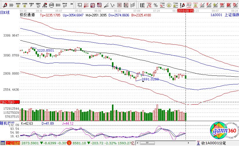 滬指跌2.07%,報(bào)2723點(diǎn);深成指跌2.32%,報(bào)8581點(diǎn);創(chuàng)業(yè)板指跌2.63%,報(bào)1478點(diǎn)。從盤面上看,啤酒、水泥、白酒、草甘膦、在線旅游、互聯(lián)網(wǎng)保險(xiǎn)、新疆振興、物流等板塊跌幅居前。滬股通凈流出7.8億,深股通凈流出6.3億。相應(yīng)的極反通道指標(biāo)的支撐壓力提示,如下圖所示: