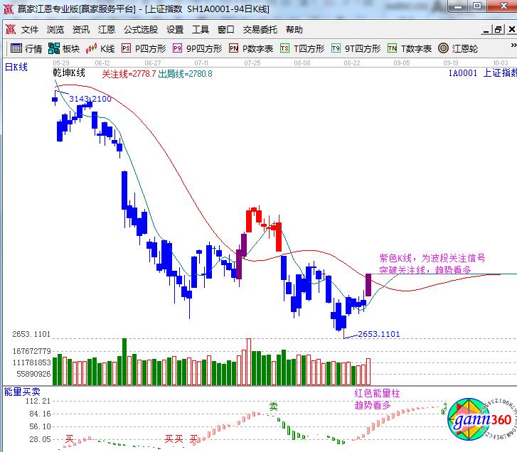 江恩看盤綜述:通過江恩理論系統(tǒng)趨勢、時(shí)間、價(jià)格工具綜合評判市場三星看多(五星評級標(biāo)準(zhǔn))。周一滬指強(qiáng)勢反彈直逼2800一線,此位置為日線生命線壓力,30分鐘藍(lán)線壓力,波段百分比50%壓力,則短線應(yīng)重點(diǎn)關(guān)注此位置,周二不能強(qiáng)勢突破,短線將大概率回落整理,操作上不要追高,手中個(gè)股結(jié)合壓力點(diǎn),獲利兌現(xiàn)為主。短線不破2740仍可精選個(gè)股把握交易機(jī)會。進(jìn)入9月,市場會更加明朗,波段底倉安心持有,生命線附近整理后突破走強(qiáng),將是新的加倉機(jī)會。