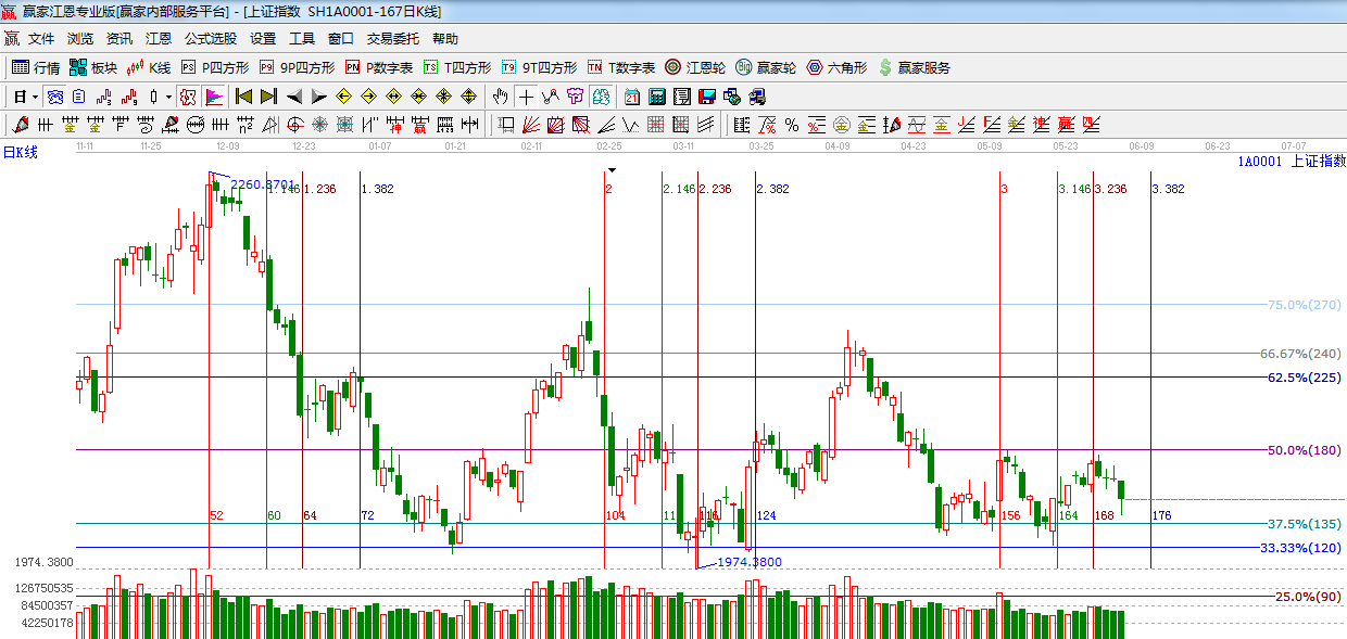 ☆依據(jù)贏家江恩系統(tǒng)波段百分比提示:指數(shù)繼續(xù)回落 ,明日關注下方支撐135度 2007點,120度1989點。