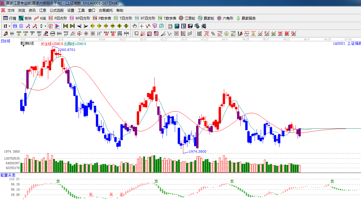 ☆依據贏家江恩系統極反通道提示:生命線之下,弱勢區域,明日重點留意生命線2050的爭奪,如放量突破,后期看多,否則繼續保持弱勢整理。