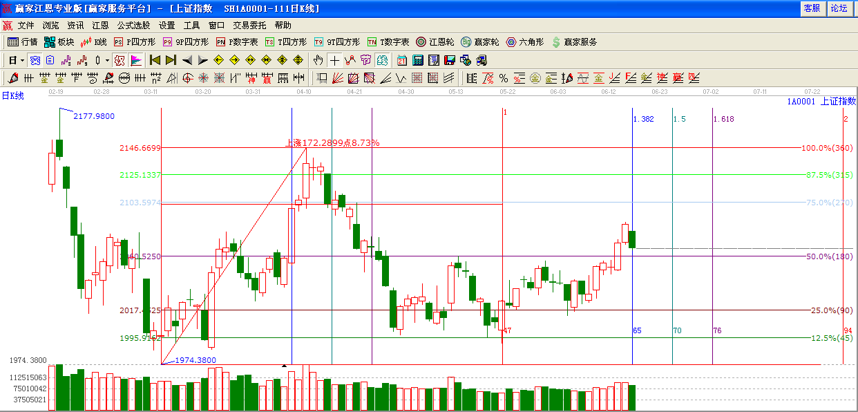 ☆依據贏家江恩系統黃金時間周期線提示:近期是16. 17日時間窗口,2060位置不破短期有望沖擊2100點。