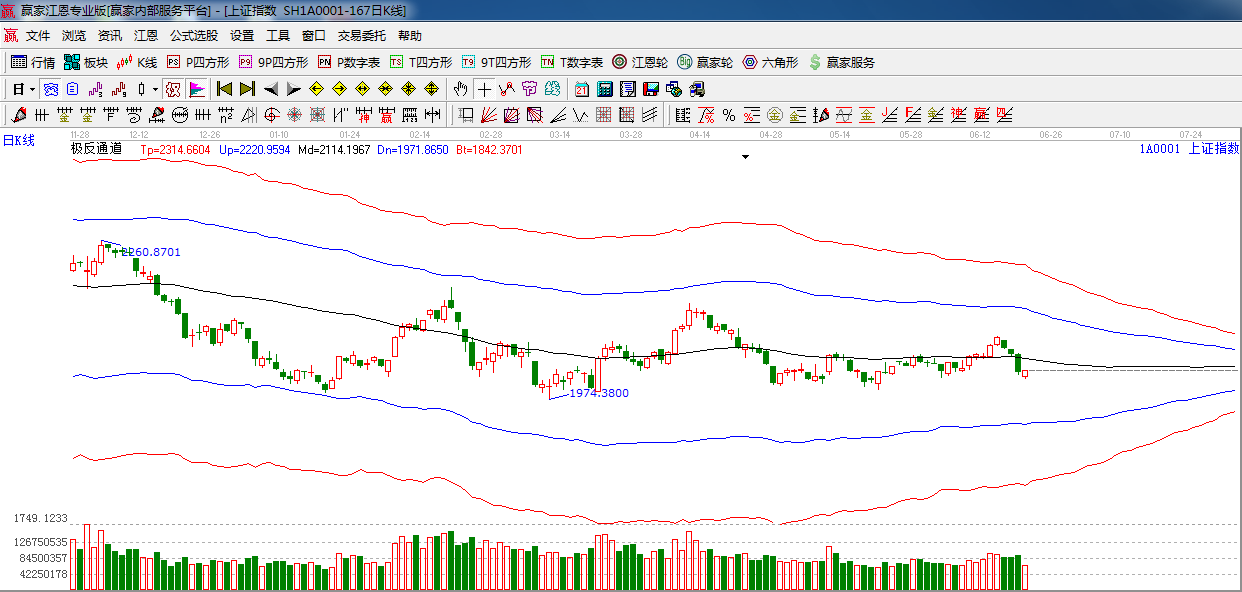 江恩看盤綜述:依據贏家江恩技術工具分析得出:指數經過周四的大跌,周五下跌動能暫有所減弱,在江恩135度位置止跌小幅反抽,量能 大幅萎縮,今日謹防有沖高回落的動作,本周前半周或將保持這種弱勢整理走勢,下一時間窗口在25號附近。操作上,倉位控制在3成,減少 操作頻率。