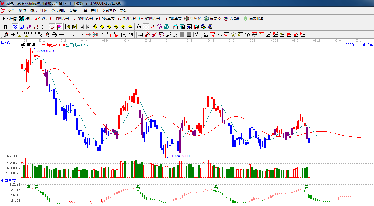 ☆依據贏家江恩系統極反通道提示:中陰線破位生命線,小陽線反抽,依然弱勢區域,看空。