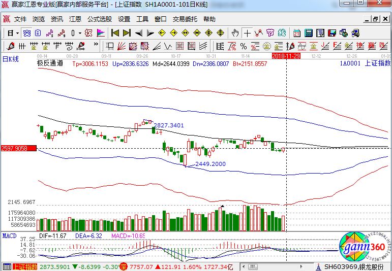 滬指漲1.05%,報收2601點;深成指漲1.60%,報收7757點;創(chuàng)業(yè)板漲1.95%,報收1341點。盤面上看,通信服務(wù)、海南、知識產(chǎn)權(quán)保護(hù)、證券、手游、文化傳媒、數(shù)字中國等板塊漲幅居前;園區(qū)開發(fā)、天津自貿(mào)區(qū)、獨角獸概念、創(chuàng)投、水泥等板塊跌幅居前。滬股通凈流入20億,深股通凈流入8億。相應(yīng)的極反通道指標(biāo)的支撐壓力提示,如下圖所示: