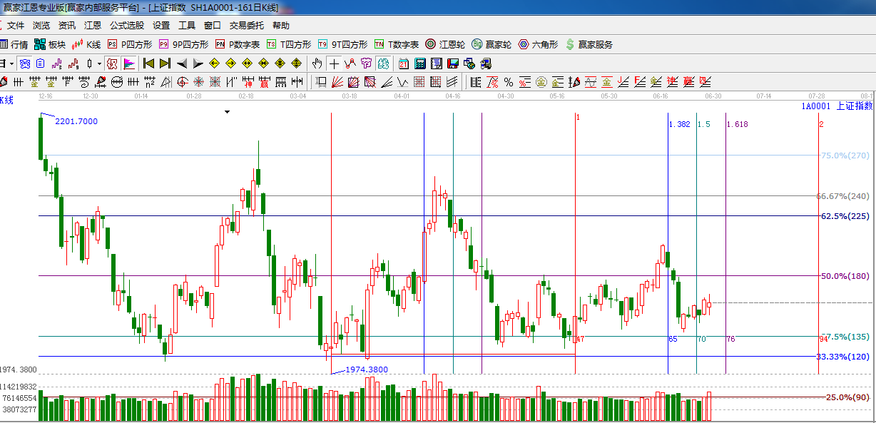 江恩看盤綜述:依據贏家江恩技術工具分析得出:周五生命線遇阻回落,收陰十字星,量能有所放大,生命線2040不能突破短期依然震蕩整 理或小幅下探,本周時間窗口7月2日附近,有望給出短期方向,操作上,倉位控制在3-5成。