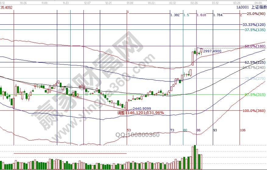大盤時隔48周重回生命線上代表波段轉多,日線脫離極反通道在線外運行,極強狀態運行終需有回歸通道需求,月線生命線3060點是強壓,空間點位上,江恩輪中輪、價格四方形顯示,3031、3051為盤中壓力,2961、2944點為支撐,7號為時間窗口。操作策略,大盤維持日線震蕩,持股上享受瘋狂的同時不斷提高止賺位,即保護了利潤又可將利潤最大化,短線開倉跟蹤15分鐘生命線得失,整體倉位持在6成左右。