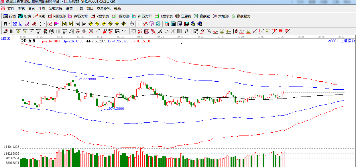 江恩看盤綜述:依據贏家江恩技術工具分析得出:周三指數在藍籌股的帶領下如期攻擊江恩2082-2089區間,隨后高位震蕩至收盤,創業板大跌,低估值藍籌強勢護盤,預計短期大盤繼續高位震蕩走勢,日線下一時間窗口是7月28日,操作上,關注低位藍籌股以及受益微刺激的高鐵、核電、特高壓、新能源等概念。