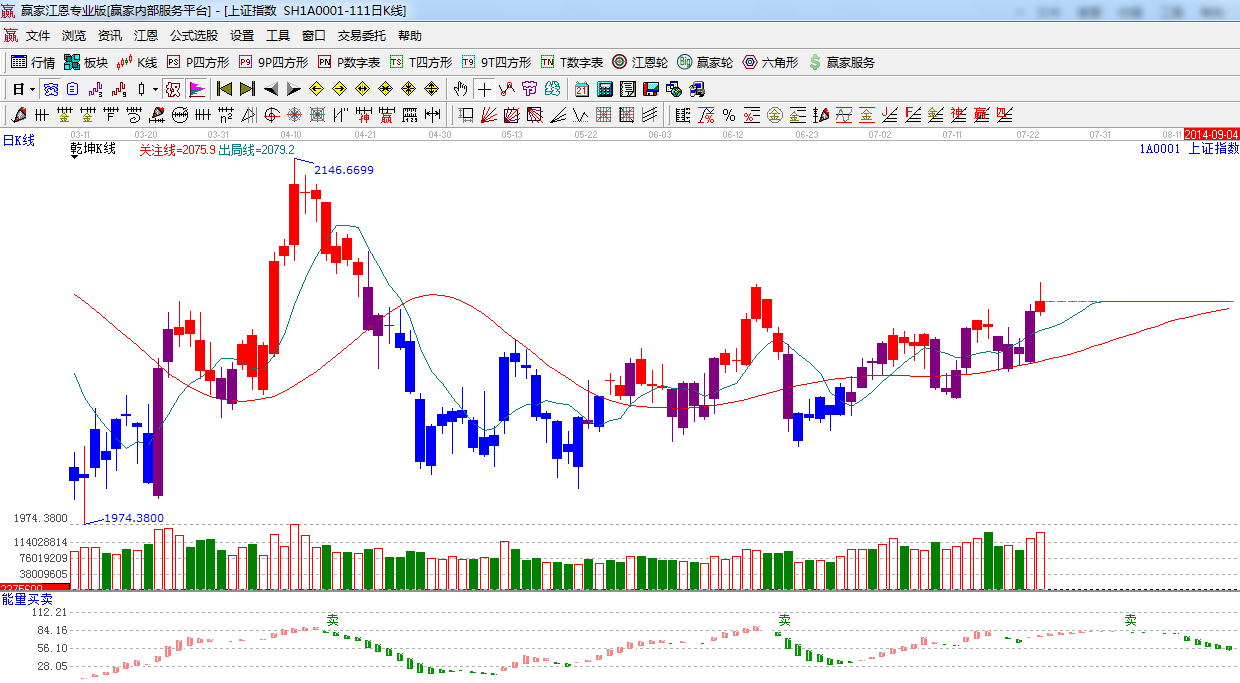 ★依據贏家江恩系統極反通道提示:生命線之上趨勢強勢,短期阻力依然是中位線2080附近。