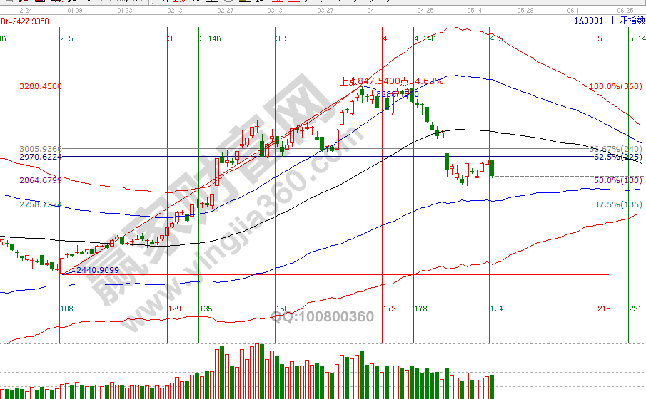 回顧5月上半個月,因4月22、25號按規則兩次提示減倉與空倉,規避了節后大跌,8號、9號為5月第一個時間窗口,遇空間價格工具支撐形成時價四方信號提示短線參與,15、16號提示日線再顯時價信號應做出獲利了解動作,再一次回避了17號中陰調整。如此精準的把握市場拐點全部歸功于贏家江恩系統及系統的研發老師,這也是1.5億投資者福音。當多數投資者對今日下跌束手無策時,贏家江恩技術服務團隊已在學員群中給出解答,先人一步應對市場走勢。市場4月快速調整需要時間來化解壓力,這一輪2800-2834(中期參考位)反彈大家要有足夠的耐心和充分的風險控制能力,震蕩結束后市場必會有一次反攻黑色生命線機會。20號盤中支撐是2844點、2834點,盤中壓力是2894點、2911點,5月第三個時間窗口是29號,再次機會在醞釀中。操作策略,指數擊破黑色生命線進入弱勢區域,目前處于短線反彈周期,高風險者倉位3-4成,低風險者等待中期參考位。