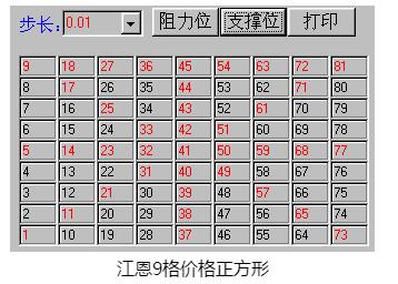 下圖為江恩9格價格四方形江恩9格價格正方形和江恩正方形都是用于分析股票價格的支持和阻力位,只是制作方法不同。9格價格正方...