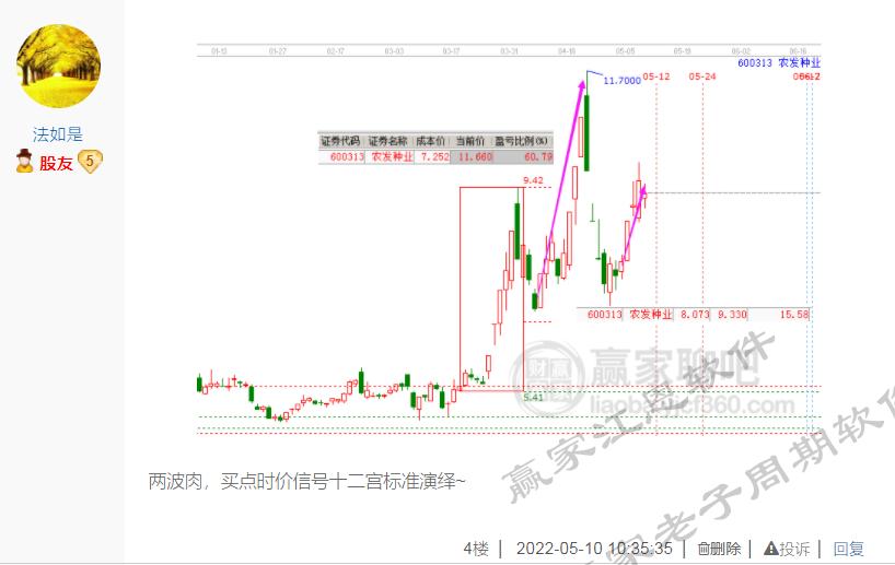 贏家按照工具信號當時只跟蹤了兩波,分別是第1波和第2波,剩下的是高風險地帶,選擇做個局外人默默關(guān)注。看的懂,但不做。因為只有理性投資才能長久收益!接下來共同驗證農(nóng)發(fā)種業(yè)未來價格預測的高光時刻!