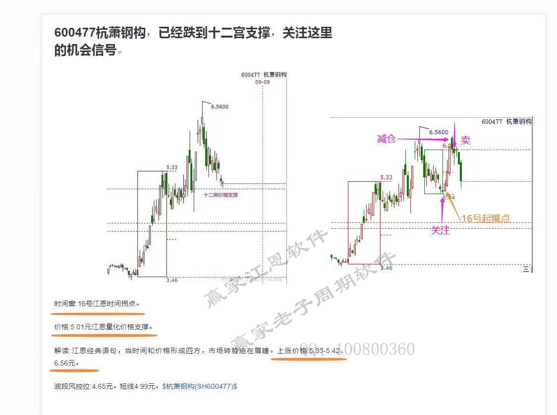 前兩天跟蹤的杭蕭鋼構,這就是贏家時價工具老子十二宮,在實盤中所呈現的信號——關鍵的時間,關鍵的點位。