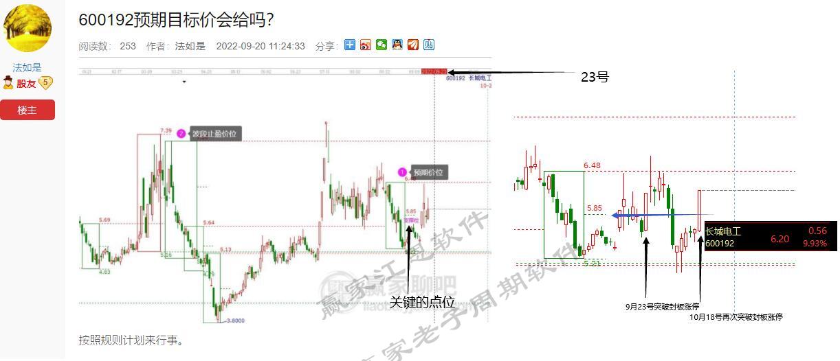 后期驗證:當23號來臨,恰逢價格突破5.85直接以漲停的姿勢迎接6.48的預(yù)期價!當?shù)诙喂蓛r再次突破關(guān)鍵的點位5.85元時,再次觸發(fā)10cm漲停板!體驗下十二宮工具信號關(guān)鍵價格的預(yù)測魅力!