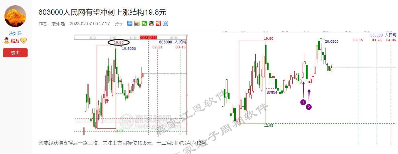 603000人民網(wǎng),2月7號依據(jù)十二宮工具分析,當(dāng)上漲結(jié)構(gòu)形成,趨勢上形成風(fēng)險(xiǎn)信號,十二宮的上漲結(jié)構(gòu)起始時(shí)間是12月15號,截止時(shí)間是1月4號??梢钥闯?/span>4號之后,股價(jià)神奇般的一路回調(diào)。