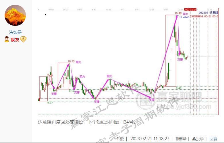 再來看達意隆的后續跟蹤,最終達意隆不偏不倚按照回調警戒線11.53元-10.75元支撐區間獲得支撐,股價再次上攻,空間正在找工具頂部15.49元。老子時間分別是未來的3月6號、3月9號、3月21號、3月31號。依照十二宮工具信號,趨勢-買賣點-時間轉折點等問題,均能提前做出交易計劃,實現低買高賣的波段利潤。