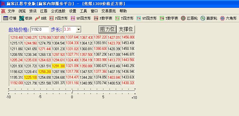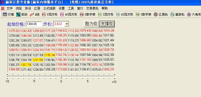 江恩價格正方形在其江恩理論中是較為常用的分析工具之一,江恩價格正方形可以把價格的重要高低點演繹的淋漓盡致。在實戰中重要的點位經常發生一些重要的轉折。有著重要的指導性應用。