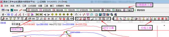 1.軟件安裝成功之后,第一次打開軟件,可以看到K線界面,此時,可以按鍵盤上的F2 F3,調出完整的工具欄: